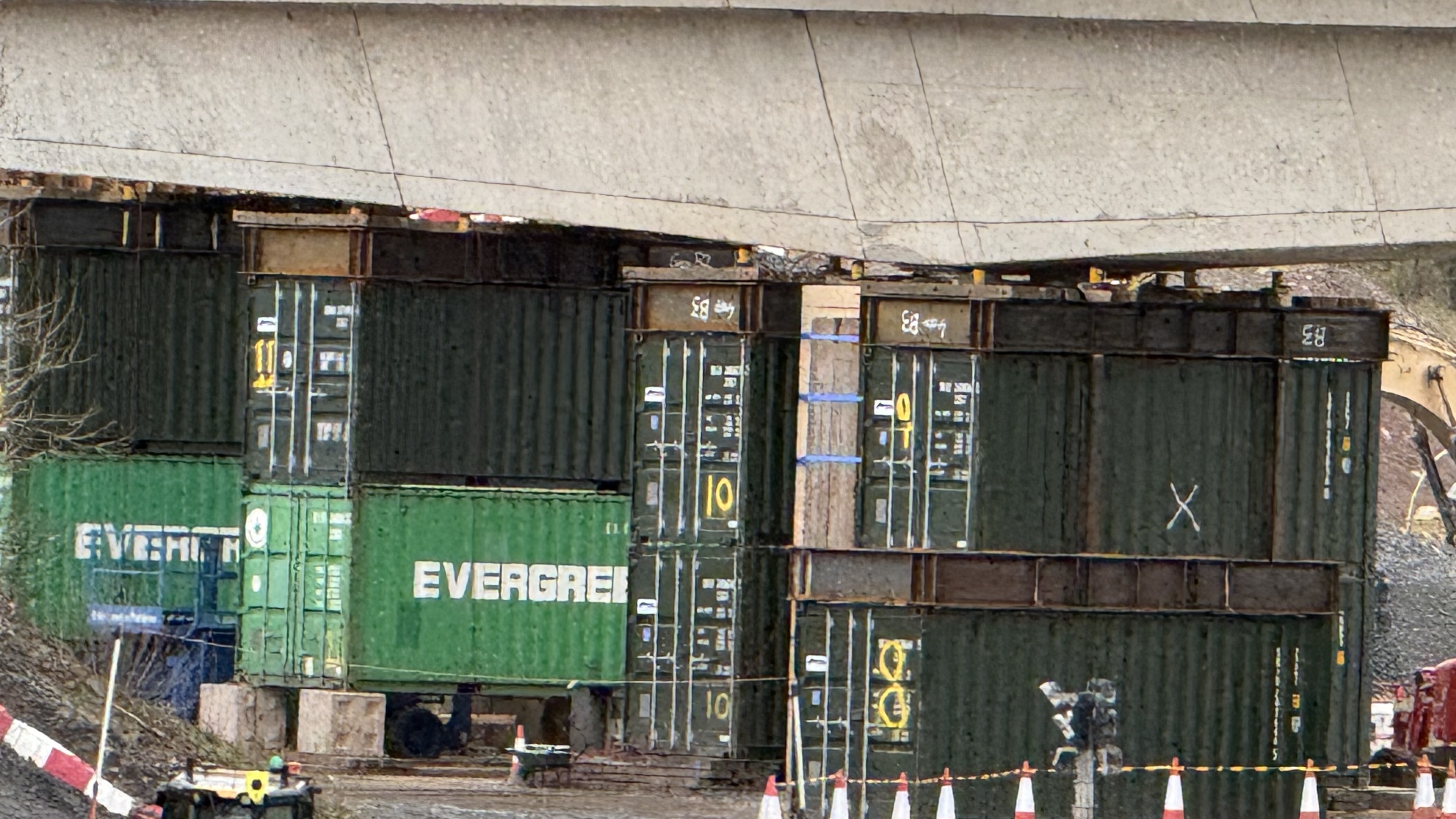 Once the motorway is closed, Network Rail will begin constructing a temporary platform to raise the level of the M6 to match that of the compound, while also protecting the motorway surface from damage. Shipping containers will then be stacked beneath the bridge within the motorway corridor, with hydraulic jacks placed on their roofs. These will work in conjunction with jacks already positioned on either side of the motorway to lift the bridge clear of the embankment piers and support columns, once the high-tension cables that have held the bridge together for six decades are released.
