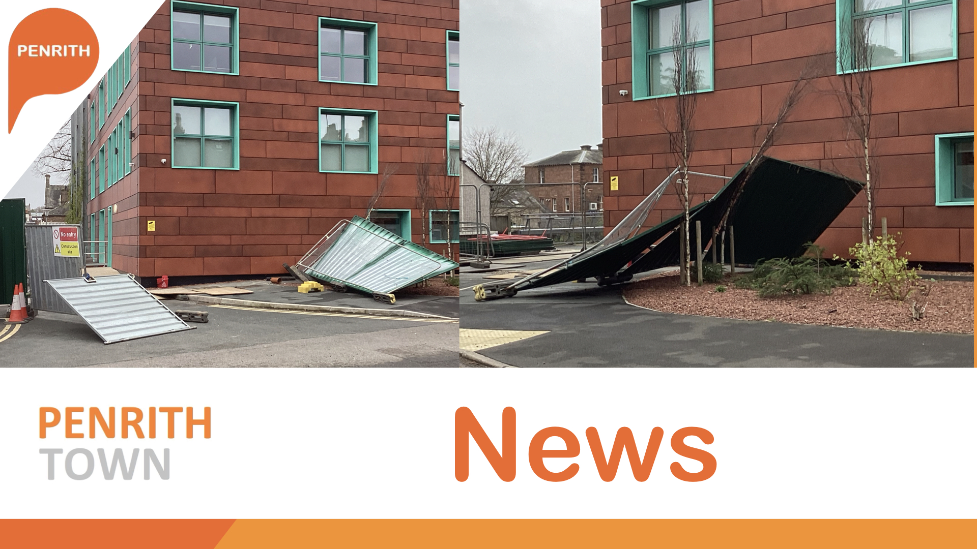 Penrith is beginning to feel the force of Storm Dave, as strengthening winds under an amber weather warning have already caused damage to metal gates and fencing around Voreda House.