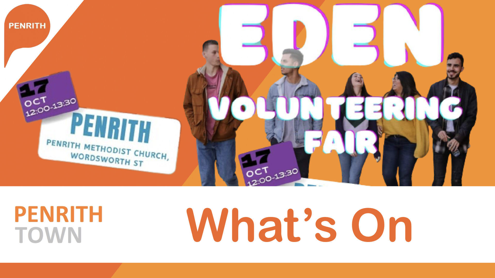 The Eden Volunteering Fair, organised by Cumbria CVS will take place on Tuesday 17 October from 12noon-1.30pm at Penrith Methodist Church, Wordsworth Street, Penrith, CA11 7QY