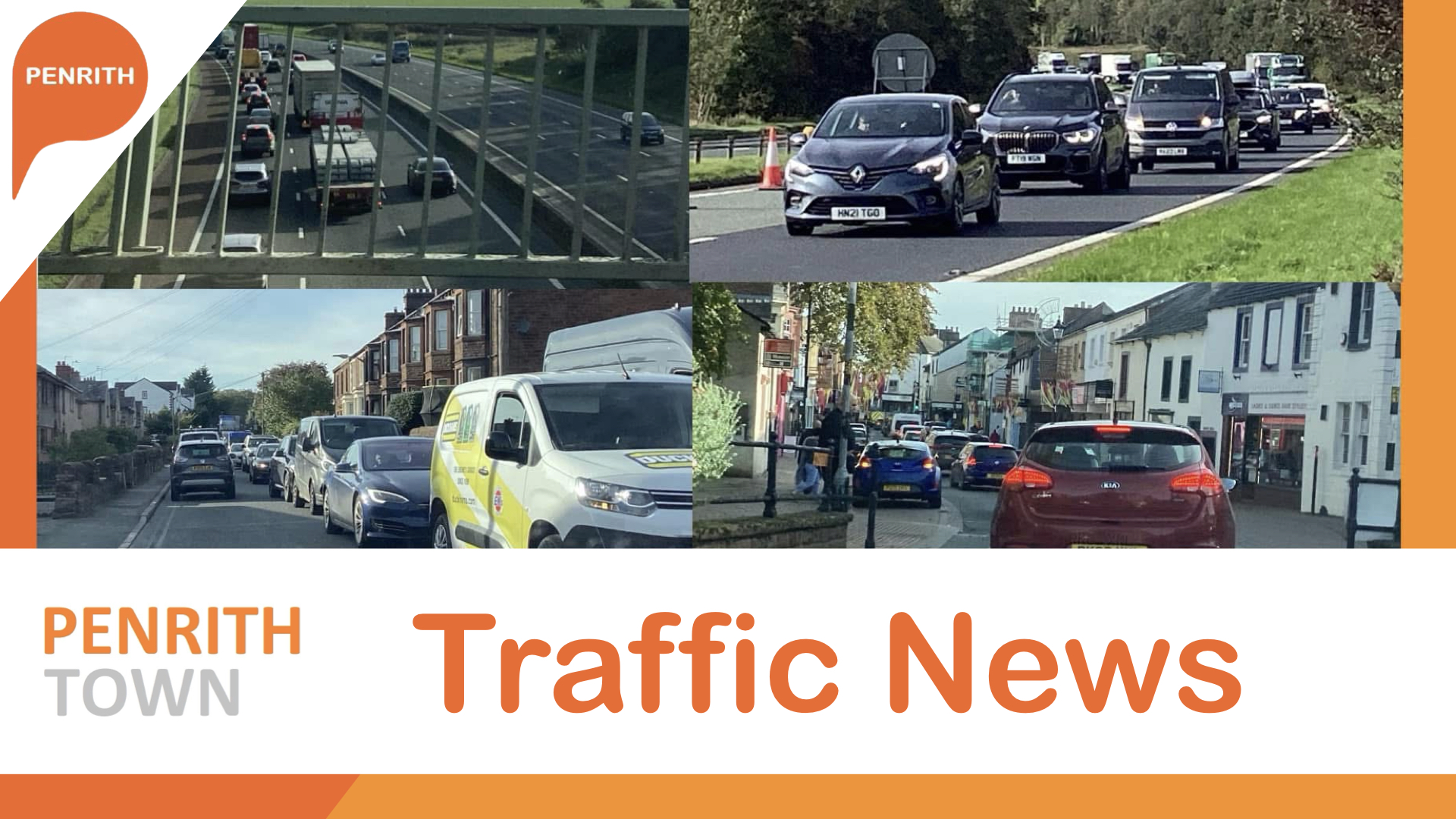 Traffic is queuing on main roads through Penrith including the A6 along A66 with traffic on the M6 southbound quad back past J41.